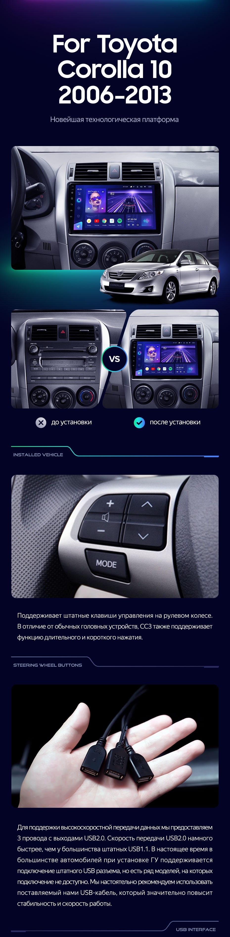 Штатная магнитола Teyes CC3 2K 360 6/128 Toyota Corolla 10 E140 E150 (2006-2013) Тип-B (13") - купить всего за 50 300 руб. в интернет-магазине в Иванове Teyes.com.ru. ✓ Самый лучший выбор мультимедиа ✓ Лучшая замена штатному ГУ ✓ Тел. +7 (800) 775-31-74