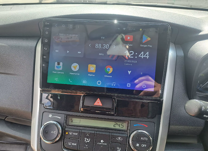 Защитное стекло 2,5D имеет слегка скругленные грани. Эта особенность делает его практически незаметным в районе краев экрана магнитолы, где он ограничен рамками корпуса.