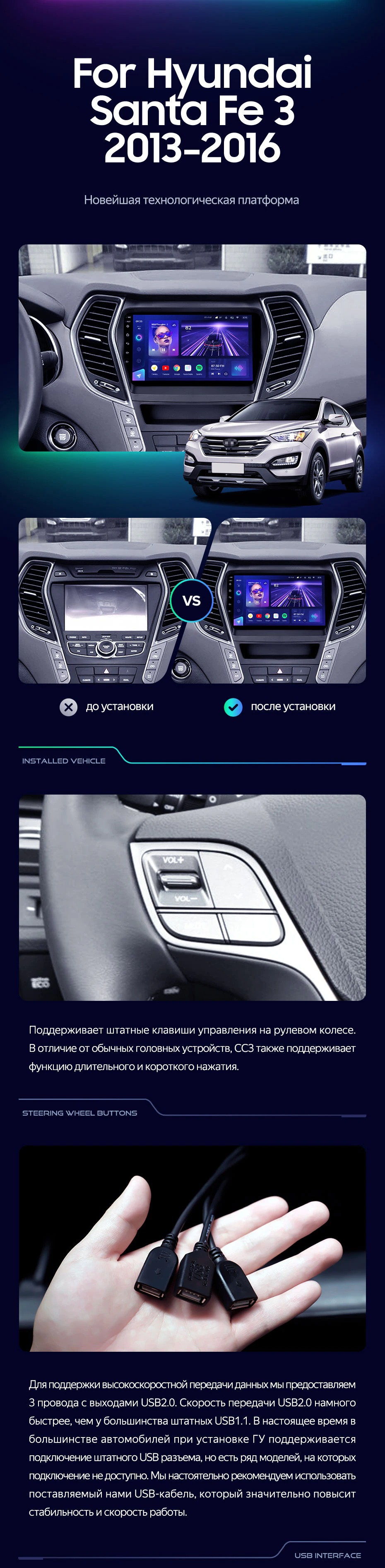 Штатная магнитола Teyes CC3 4/32 Hyundai Santa Fe 3 (2013-2016) Тип-B - купить всего за 33 530 руб. в интернет-магазине в Иванове Teyes.com.ru. ✓ Самый лучший выбор мультимедиа ✓ Лучшая замена штатному ГУ ✓ Тел. +7 (800) 775-31-74