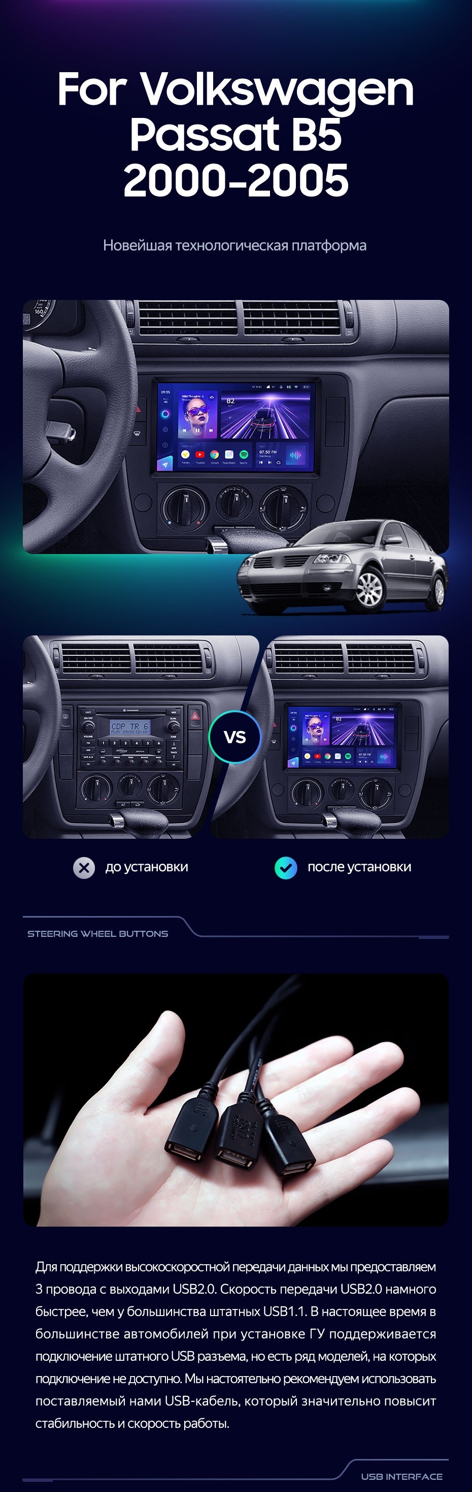 Штатная магнитола Teyes CC3 4/32 Volkswagen Passat B5 (2000-2005) - купить всего за 33 490 руб. в интернет-магазине в Иванове Teyes.com.ru. ✓ Самый лучший выбор мультимедиа ✓ Лучшая замена штатному ГУ ✓ Тел. +7 (800) 775-31-74