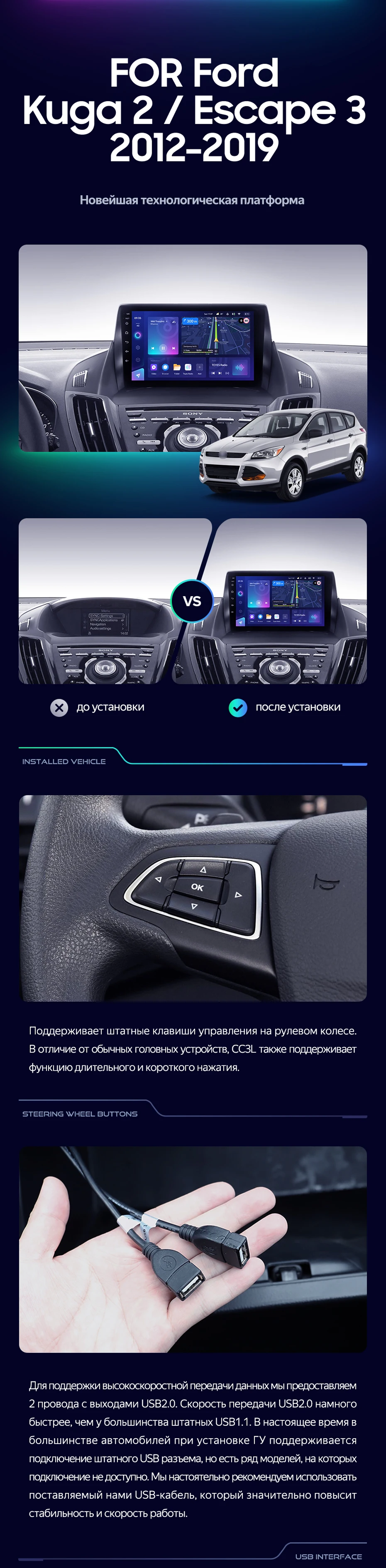 Штатная магнитола Teyes CC3L 4/32 Ford Escape 3 (2012-2019) Тип-A - купить всего за 29 420 руб. в интернет-магазине в Иванове Teyes.com.ru. ✓ Самый лучший выбор мультимедиа ✓ Лучшая замена штатному ГУ ✓ Тел. +7 (800) 775-31-74