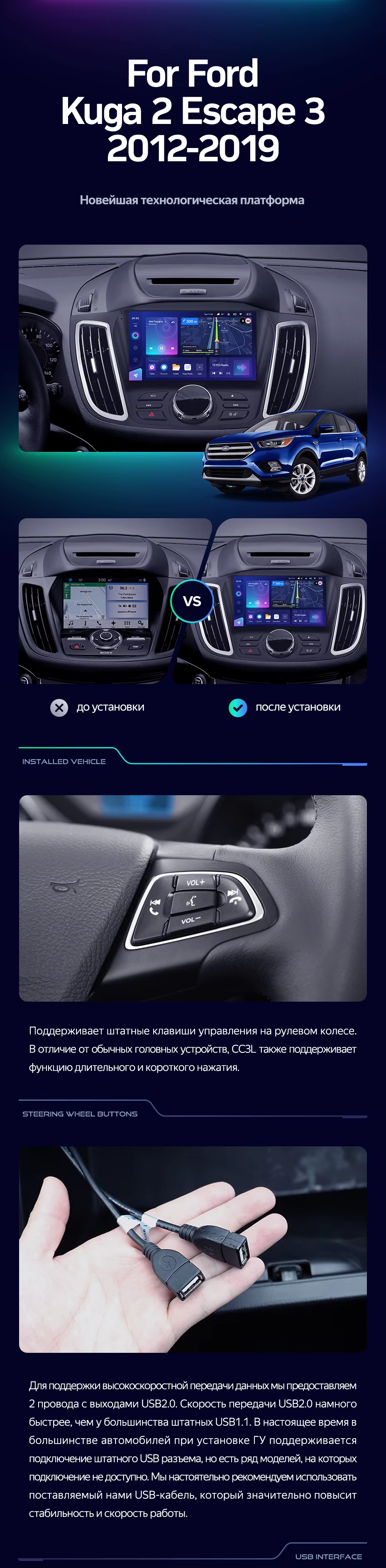 Штатная магнитола Teyes CC3L 4/32 Ford Kuga 2 (2012-2019) Тип-B - купить всего за 32 000 руб. в интернет-магазине в Иванове Teyes.com.ru. ✓ Самый лучший выбор мультимедиа ✓ Лучшая замена штатному ГУ ✓ Тел. +7 (800) 775-31-74