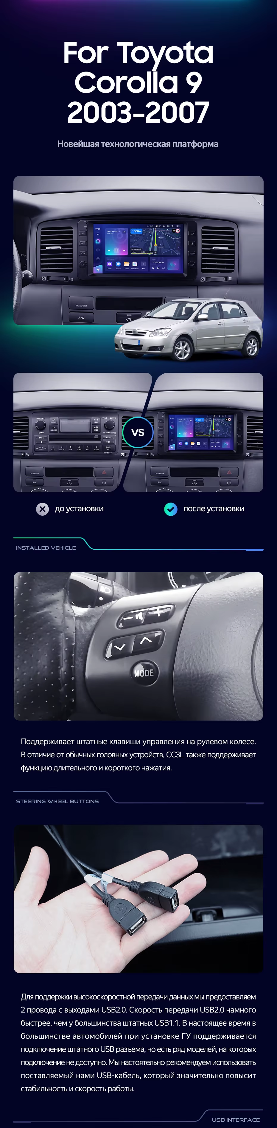 Штатная магнитола Teyes CC3L 4/32 Toyota Corolla 9 E120 E130 (2003-2007) 7" - купить всего за 28 300 руб. в интернет-магазине в Иванове Teyes.com.ru. ✓ Самый лучший выбор мультимедиа ✓ Лучшая замена штатному ГУ ✓ Тел. +7 (800) 775-31-74