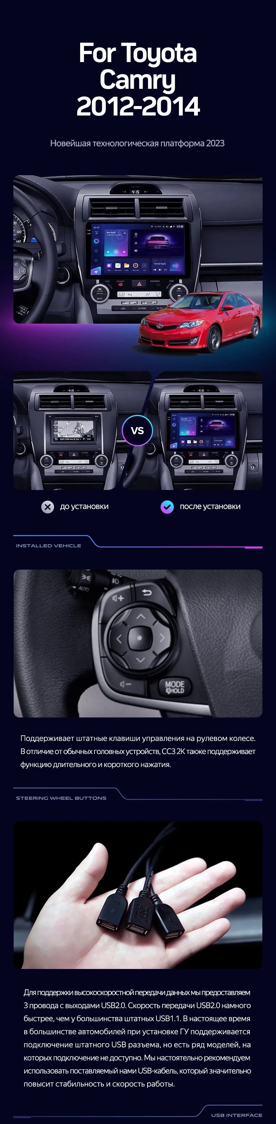 Штатная магнитола Teyes CC3L WiFi 2/32 Toyota Camry 7 XV 50 55 (2012-2014) Америка - купить всего за 17 100 руб. в интернет-магазине в Иванове Teyes.com.ru. ✓ Самый лучший выбор мультимедиа ✓ Лучшая замена штатному ГУ ✓ Тел. +7 (800) 775-31-74
