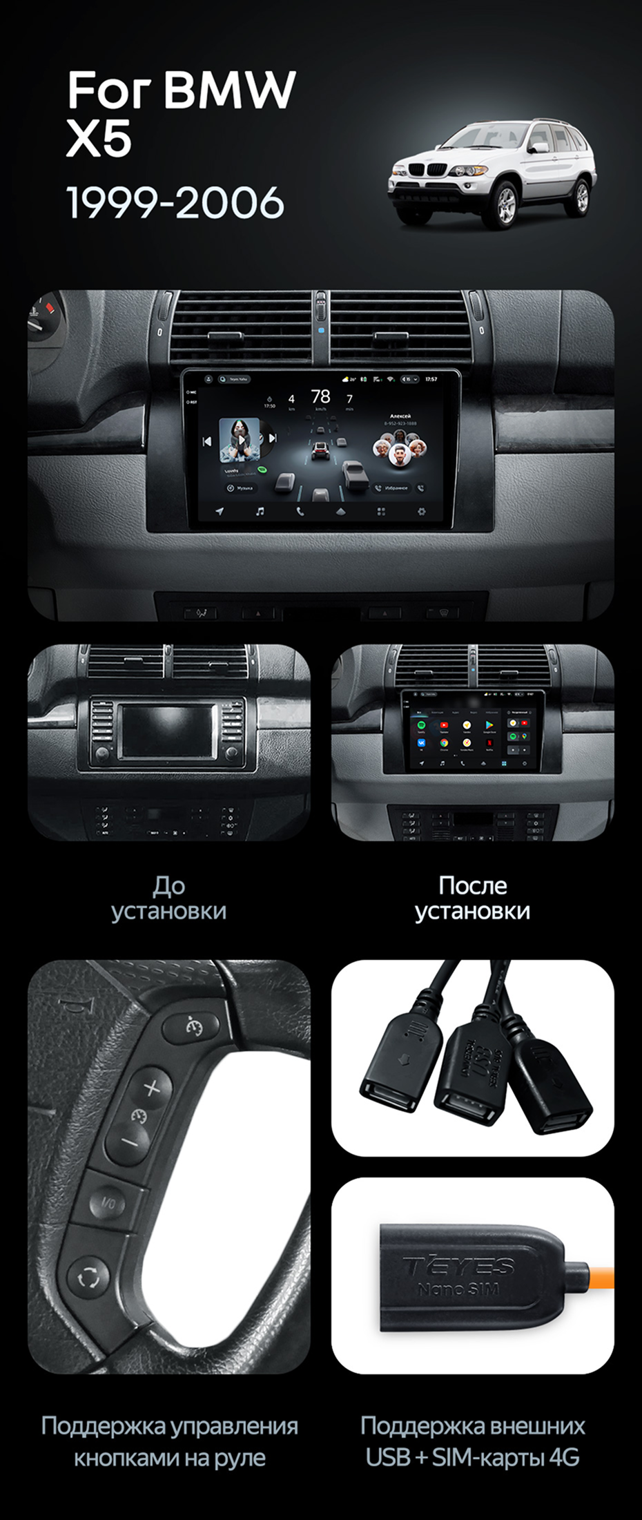 Штатная магнитола Teyes CC4 6/64 BMW X5 E39 E53 (1999-2006) - купить всего за 44 700 руб. в интернет-магазине в Иванове Teyes.com.ru. ✓ Самый лучший выбор мультимедиа ✓ Лучшая замена штатному ГУ ✓ Тел. +7 (800) 775-31-74