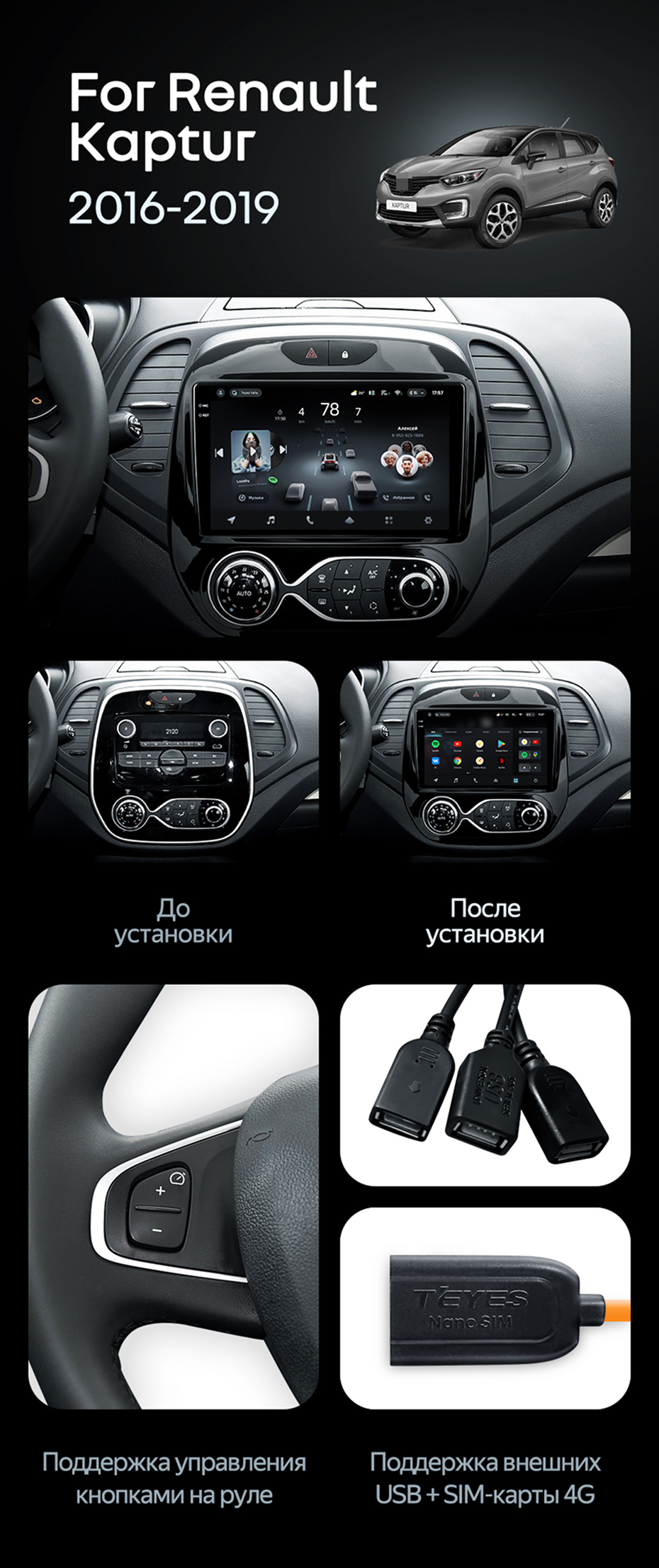 Штатная магнитола Teyes CC4 6/64 Renault Kaptur (2016-2019) F2 - купить всего за 44 420 руб. в интернет-магазине в Иванове Teyes.com.ru. ✓ Самый лучший выбор мультимедиа ✓ Лучшая замена штатному ГУ ✓ Тел. +7 (800) 775-31-74