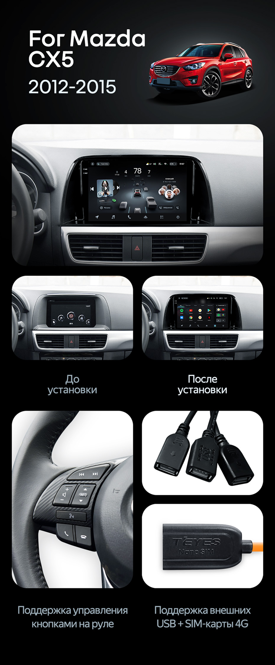 Штатная магнитола Teyes CC4 Pro 12/256 Mazda CX-5 (2012-2015) Тип-C - купить всего за 69 550 руб. в интернет-магазине в Иванове Teyes.com.ru. ✓ Самый лучший выбор мультимедиа ✓ Лучшая замена штатному ГУ ✓ Тел. +7 (800) 775-31-74