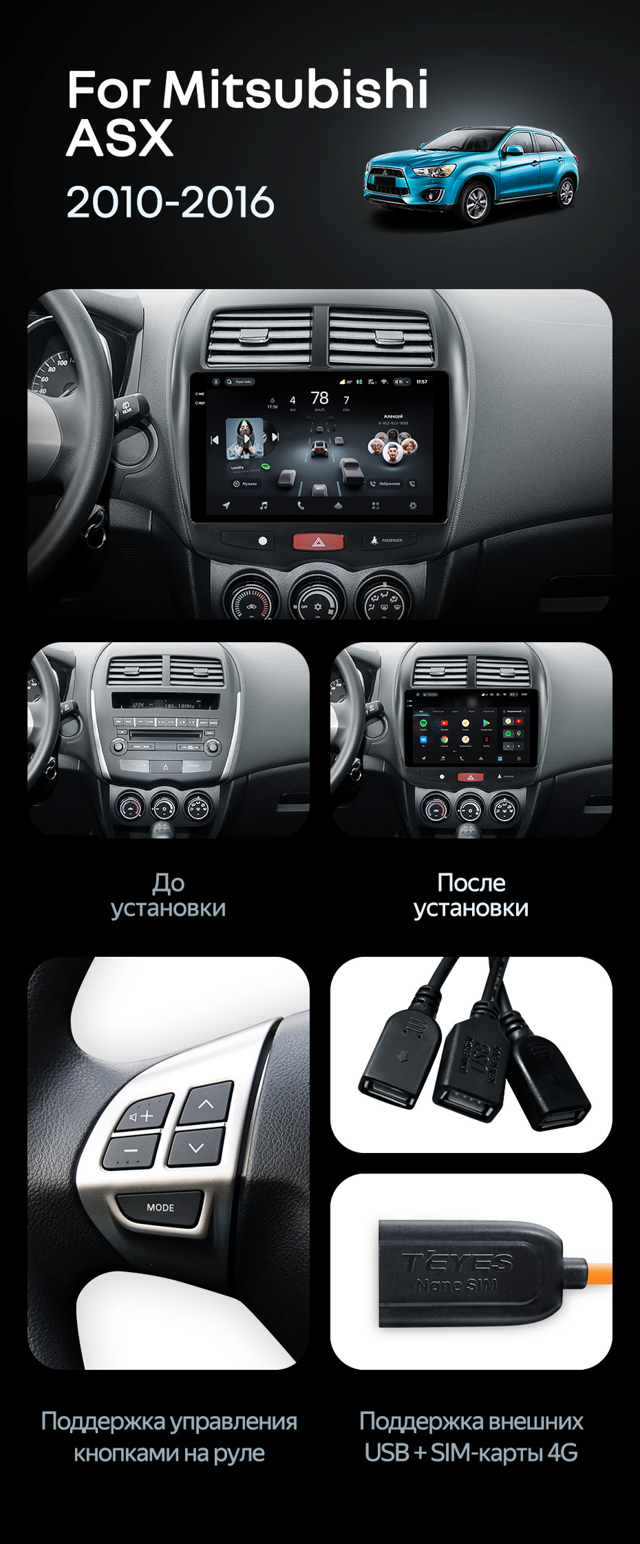 Штатная магнитола Teyes CC4 Pro 12/256 Mitsubishi ASX 1 (2010-2016) Тип-A - купить всего за 68 470 руб. в интернет-магазине в Иванове Teyes.com.ru. ✓ Самый лучший выбор мультимедиа ✓ Лучшая замена штатному ГУ ✓ Тел. +7 (800) 775-31-74