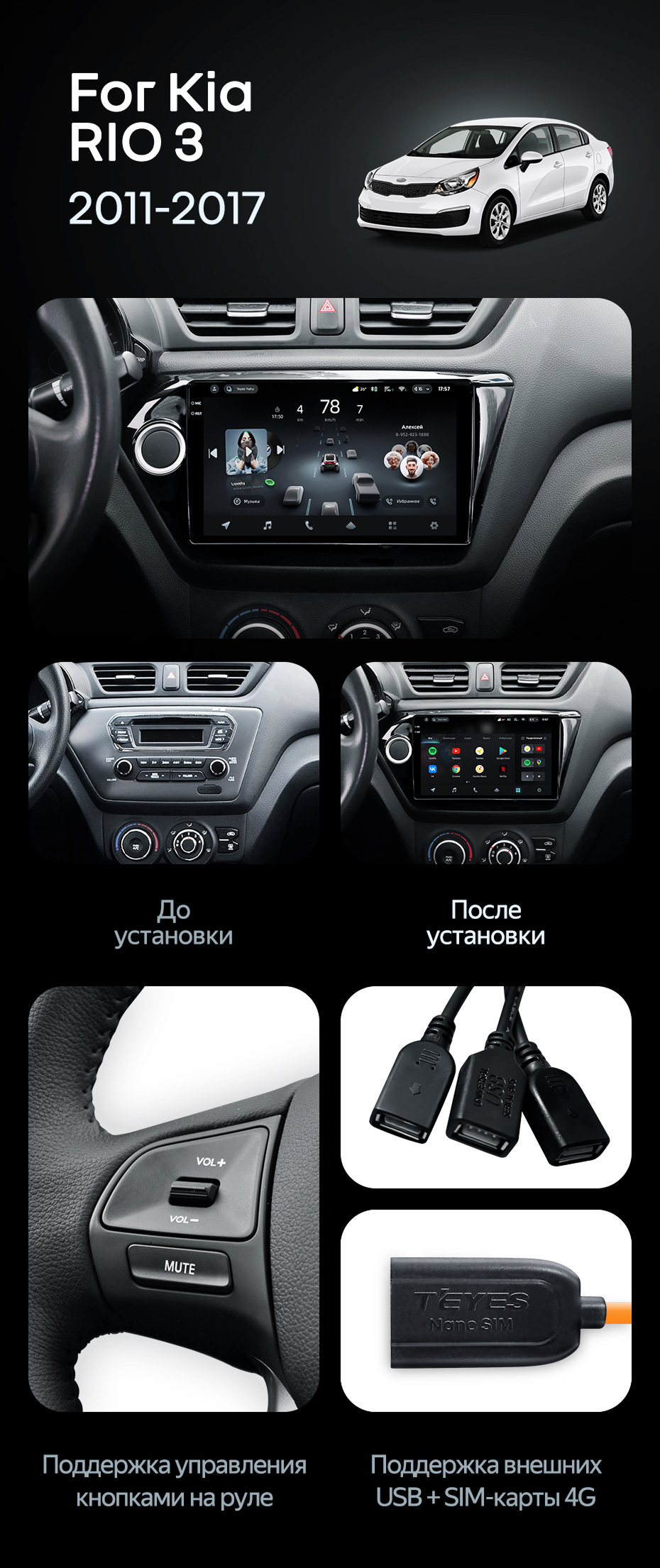 Штатная магнитола Teyes CC4 Pro 8/128 Kia Rio 3 (2011-2017) - купить всего за 57 790 руб. в интернет-магазине в Иванове Teyes.com.ru. ✓ Самый лучший выбор мультимедиа ✓ Лучшая замена штатному ГУ ✓ Тел. +7 (800) 775-31-74
