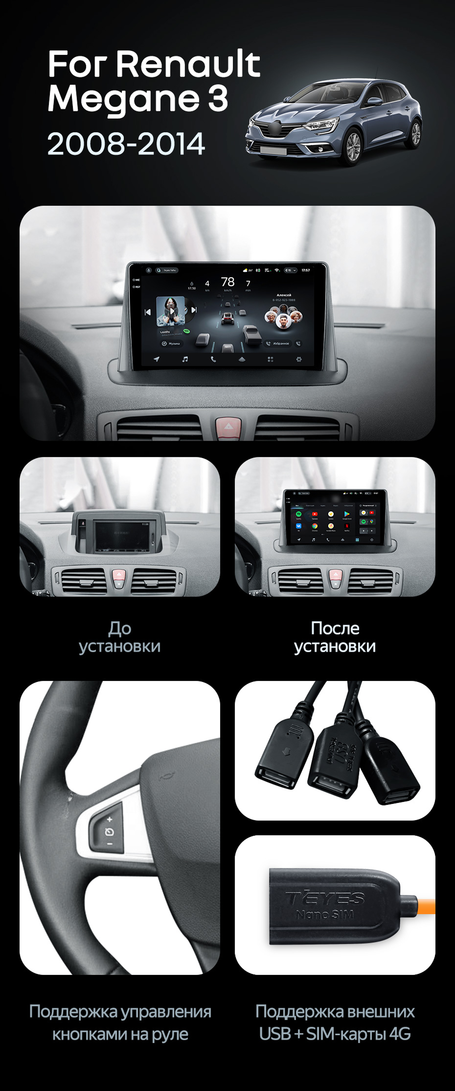 Штатная магнитола Teyes CC4 Pro 8/128 Renault Megane 3 (2008-2014) - купить всего за 60 010 руб. в интернет-магазине в Иванове Teyes.com.ru. ✓ Самый лучший выбор мультимедиа ✓ Лучшая замена штатному ГУ ✓ Тел. +7 (800) 775-31-74