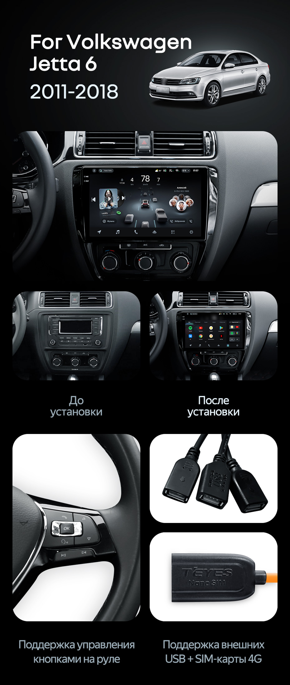Штатная магнитола Teyes CC4 Pro 8/128 Volkswagen Jetta 6 (2011-2018) - купить всего за 58 420 руб. в интернет-магазине в Иванове Teyes.com.ru. ✓ Самый лучший выбор мультимедиа ✓ Лучшая замена штатному ГУ ✓ Тел. +7 (800) 775-31-74