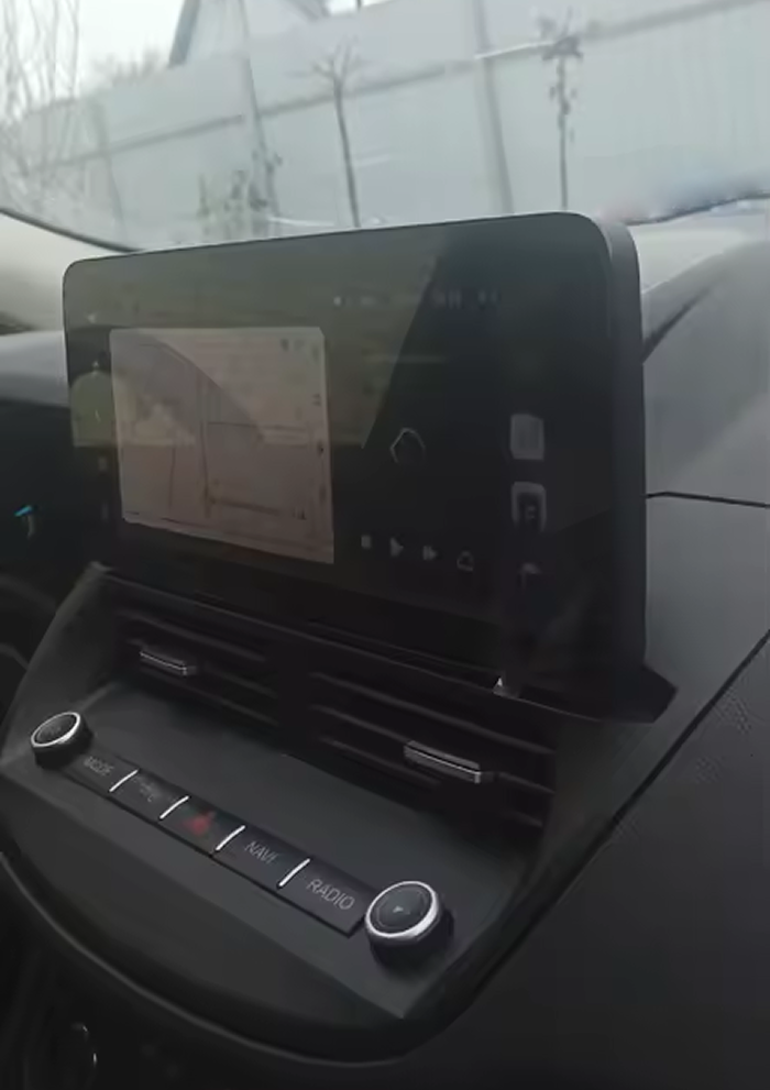 Защитное стекло 2,5D имеет слегка скругленные грани. Эта особенность делает его практически незаметным в районе краев экрана магнитолы, где он ограничен рамками корпуса.