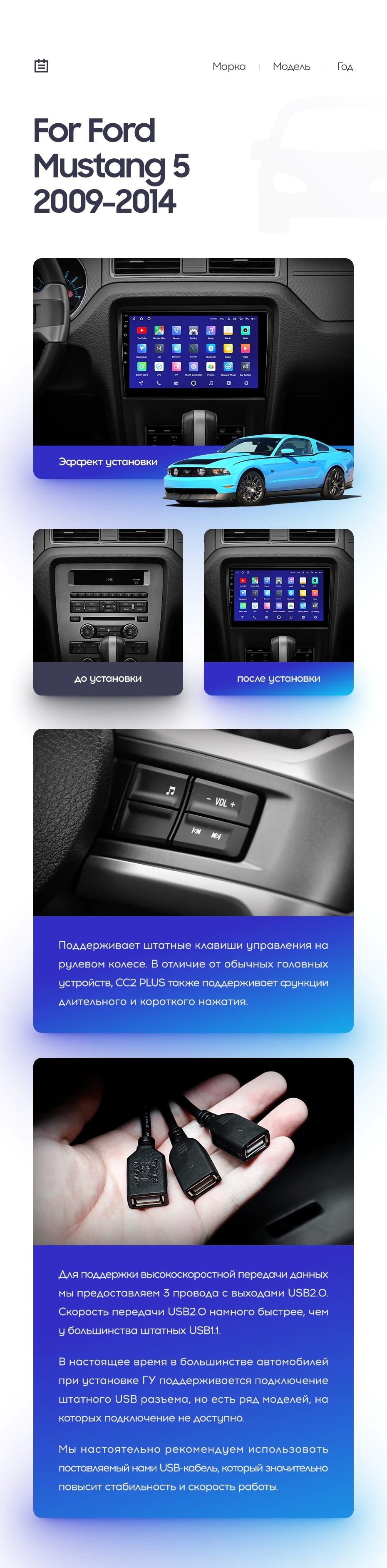 Полный комплект установки магнитолы Teyes с рамкой и проводкой можно выбрать в каталоге штатных магнитол Ford Mustang 5 S-197 (2009-2014).