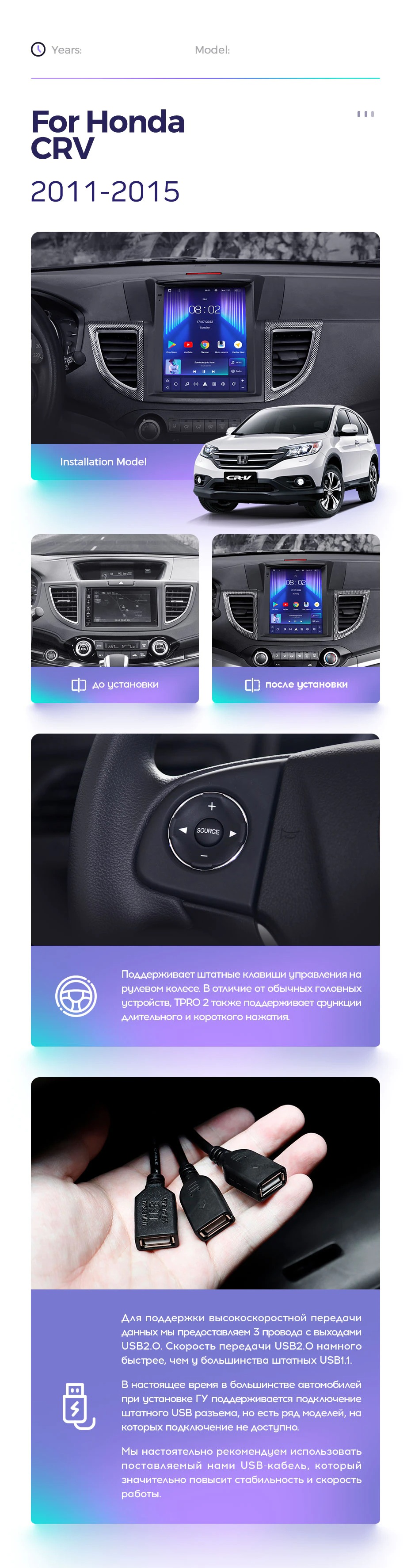 Полный комплект установки магнитолы Teyes с рамкой и проводкой можно выбрать в каталоге штатных магнитол Honda CR-V 4 RM RE 2011-2015.